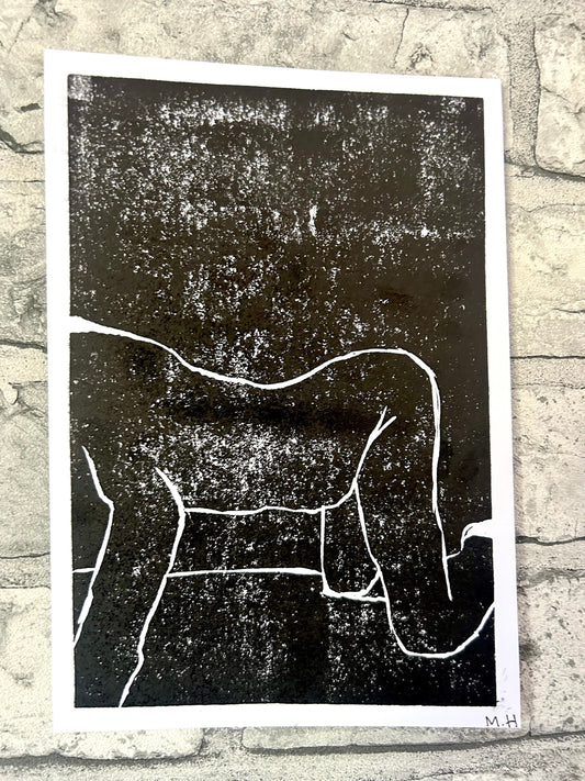 Max Hammond “Waiting Alone” Lino cut, Monoprint, Original, Contemporary Confessional artist, Signed, Dated, gift, art, Drawing, 1/1